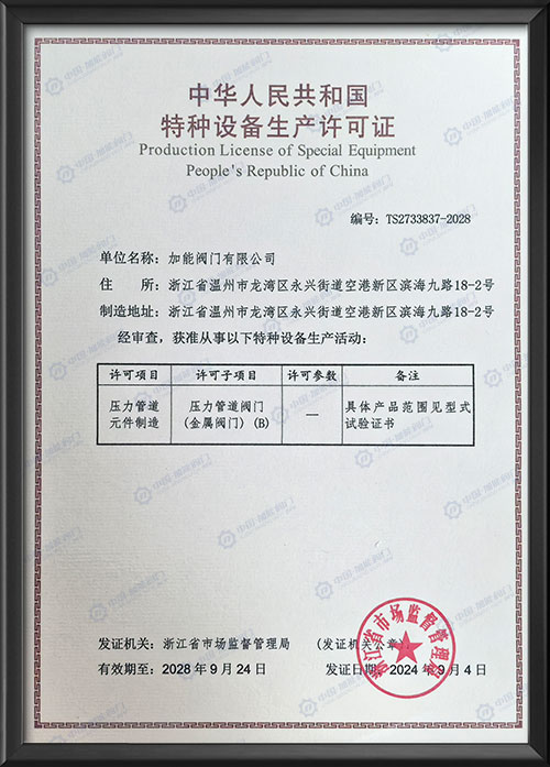 创办于1999年,是一家集研发、铸造、加工、销售服务为一体的阀门制造高新企业。经过三十余年的艰苦奋斗、务实拼搏、开拓创新,实现了飞速、持续健康发展。公司注册资金5800万元,生产能力年产值达到8000余万元。拥有一支素质高、能力强、业务精的技工队伍。公司拥有大型精良的金加工设备、领先的生产技术、先进的制造工艺、完善的检验设施、完备的检测手段、细密的组织管理,保证了产品的高质量。公司先后获得国家特种设备制造许可证 (TS认证),质量体系认证 (ISO9001认证),环境体系认证,浙江省科技型企业、安全生产标准化企业、燃气协会供应商会员单位,石油化工供应商会员单位,阀门协会副会长单位,工程推荐产品证书,公司银行信用AAA级及多项专利证书等。